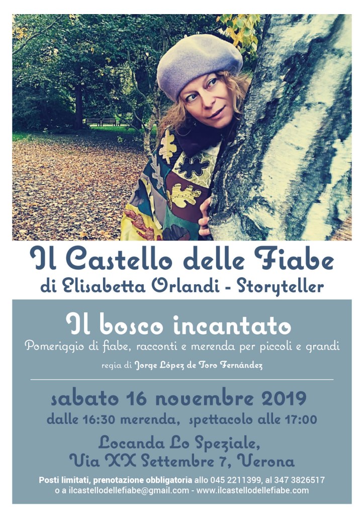 Vi aspetto alla Locanda Lo Speziale, sabato 16 novembre 2019 alle 16:30 per una deliziosa merenda seguita da fiabe, fiabe e ancora fiabe. Prenotazioni e informazioni allo 0452211399 e via mail a ilcastellodellefiabe@gmail.com